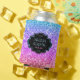 Elegant customizable wedding template text with black frame background. Beautiful blue to pink glitter gradient print. Customizable initials on the bottom.