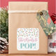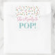 Baby shower she's ready to pop favour tag sticker with light pink, blue and gold confetti pattern, perfect for popcorn favours. Confetti is photographic effect only.