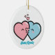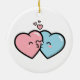 Pink & Blue Hearts Kiss Ceramic Ornament
