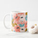Monogram flowers pattern drinking mug. Shades of pink, blue and brown flowers paired with initial or name monogram on left and right sides. Add up to five letters or initials. Upper and lower case letters available. Keep, replace or remove any text or graphics. kimberlybrettdesigns@gmail.com