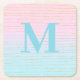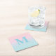 Pink Blue Ombre with Gold Lines Monogram Square Paper Coaster