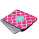 Pink Blue Quatrefoil Monogram Laptop Sleeve