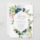 Pink Blue Rose Watercolor Floral Bridal Brunch Invitation