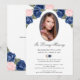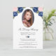 Pink Blue Silver Floral Photo Memorial Service Invitation