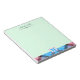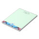 Elegant, stylish and trendy customizable notepad features "personalized name's notes" at the top, "personalized monogram" and pink-yellow plaid tartan at the bottom on Celadon background.