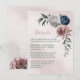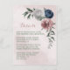 Beautiful botanical wedding enclosure card featuring romantic pink, white and navy blue flowers with green leaves.