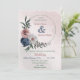 pink blue & white floral greenery wreath wedding invitation
