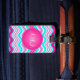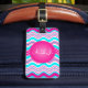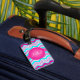 This funky monogrammed hot pink, aqua blue, and white waves and striped pattern luggage tag is fully customizable and would give your luggage a chic and modern tag that would make it easy to spot at the airport. If you need help, or want something changed, email your request to niteowlstudio@gmail.com.