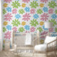 Pink Blue Yellow Lime Green Floral Art Pattern Wallpaper
