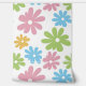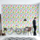 The design showcases a contemporary, summer-inspired daisy motif in shades of orange-yellow, lime green, pretty pink and bright blue set against a clean white background. It's an elegant and fashionable selection that embodies an enchanting, artistic, and abstract botanical quality, making it perfect for artistic interior designers, decor enthusiasts, trendsetters, and those who appreciate a blend of vintage retro charm and romantic sophistication. This stylish and feminine design is versatile for various modern home decor pieces, ideal for enhancing areas such as a master bedroom, guest room, child's room, or nursery with a unique flair.