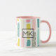 Pretty pastels for your morning coffee. This colourful, personalized coffee mug design features pink, blue and yellow paintbrush strokes and polka dots with simple name monogram.