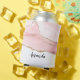 A can cooler with an elegant and trendy agate design. Pink blush watercolor with a subtle marble agate look and gold glittery ribbon layered in between.