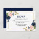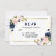 Watercolor Floral Pink Blush Blue Gold Wedding RSVP Card