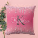 Pink Blush, Dripping Glitter, Rose Gold Monogram Throw Pillow