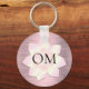 On a shimmery pink blush gradient pattern is a pink and lavender pastel shaded lotus flower where you can personalize it with a phrase, logo or name or just keep the letters OM creating a namaste theme. "boho chic elegance