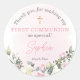 La parfaite première communion privilégie le modèle autocollant avec des fleurs d'aquarelle rose et beige pour les filles.