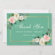 Watercolor Pink Blush White Floral Gold Wedding Thank You Card - Neo Mint Background