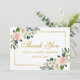 Watercolor Pink Blush White Floral Gold Wedding Thank You Card