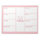 This is a perfect planner for busy families... easy to use and well organized. Each page rips off after use and the new page is ready for the next week. Clear print and personal monogram is fun.