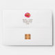 Classy chic glamourous personalized wedding envelope with blush red, pink, fuchsia and magenta botanical watercolor peony flowers pattern inside. On back side there are a gold copper metallic like shinny square with editable monogram name initials and a peony rose with editable address. .