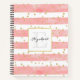 A personalized spiral notebook with an elegant pattern. Featuring pink blush coloured stripes and faux gold confetti glitter scattered around.