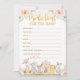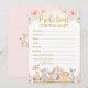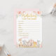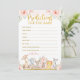 These beautiful shower game cards will add a perfect touch to your baby shower. The design features cute safari animals wearing girly flower crowns on their heads, standing next to a pretty pink teepee adorned with watercolor blush roses and soft greenery.