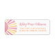 This bright and cheerful address label is the perfect finishing touch for mailing baby shower or "First Trip Around the Sun" birthday invitations. The design features a vibrant sun with a soft pink centre on the left side, with colourful rays in a playful mix of yellow, orange, pink, and red for a joyful, sunny vibe.