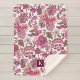 Pink Boho Vintage Floral Monogram Sherpa Blanket