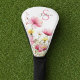Elevate your golf game with this whimsical wildflower golf head cover. It features a vibrant watercolor meadow design with pink and yellow blossoms against a clean white background. This personalized accessory is a perfect gift for the style-conscious female golfer in your life.