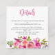 Pink Botanical Floral Wedding Details Info Enclosure Card