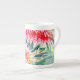 Watercolour painting of bright pink/red Australian bottlebrush flower on bone china mug
