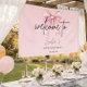 Chic pink birthday party welcome banner featuring a soft pastel background, elegant script text, and a stylish ribbon bow design. Perfect for milestone birthday decor, girls’ aesthetic party themes, photo backdrops, celebration banners, and modern birthday party decorations. Adds a trendy and inviting touch to any birthday event setup.