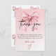 Elegant pink thank-you card featuring a stylish ribbon bow, soft pastel background, modern script typography, and a minimal heart accent. Ideal for 12th birthday celebrations, girls’ milestone parties, kids’ birthday thank-you notes, aesthetic party stationery, and heartfelt appreciation cards for guests.