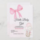 Featuring a soft pink watercolor bow and delicate modern typography, this design is perfect for a classy baby girl celebration.