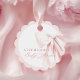 Delicate blush pink bow favor tag with a scalloped edge—perfect for adding a sweet, elegant touch to your baby shower gifts, favors, or party bags. Fully customizable and designed to match your pink bow baby shower theme.