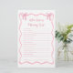 Pink Bow Baby Shower Game Who Knows Mommy Best
