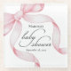 Add a touch of charm and sophistication to your baby shower with this customizable glass coaster. Featuring a soft pink watercolor coquette bow and elegant script calligraphy, this beautiful design is perfect for celebrating the mom-to-be in style - personalize it with name and shower date for a unique keepsake.