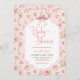 Pink Bow Baby Shower Invitation. Shabby chic girl baby shower invite. Dainty soft blush pink bow ribbon with delicate feminine watercolor roses background. Sweet as the mother to be. Calligraphy script lettering.