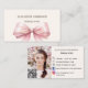Pink bow beige cream qr code social media photo business card