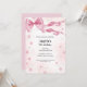Celebrate your little girl's special day in style with our charming Pink Bow Birthday Invitation! This beautifully designed invitation features a soft pink background adorned with delicate sparkles, adding a touch of magic and whimsy. A pretty pink satin-style bow sits elegantly at the top, giving it a sweet and feminine finish. Perfect for princess-themed, fairy tale, or glamorous birthday parties, this invitation sets the tone for a fun and unforgettable celebration. Easily personalized with your event details, it's both adorable and elegant—just like your birthday girl!