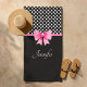 Pink Bow Black And White Polka Dots Name Beach Towel