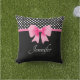 Pink Bow Black & White Polka Dots Pattern Name Outdoor Pillow