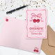 Pink Valentine's Day card for a sweet friend who's just cherrific! A pair of cherries tied with a coquette pink bow. Charming fonts in red and pink. Add a personal greeting inside the card by hand, against a pale pink background printed with a few cherries.
