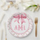 This plate design features a very chic pink rose lattice patterned background with a coordinating pink bow. You can personalize with your monogram initials.