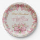 Pink Bow Coquette Floral 1st Birthday Personalized Paper Plate