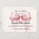 A modern and elegant Save the Date for a Quinceañera. A soft cream, beige colored background, decorated with a large pink bow. Personalize and add date, place, name and age.