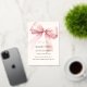 A soft beige, cream coloured background, decorated with a pink large bow. Personalize and add a name and party details. The name and the word Quinceañera are written with real rose gold foil.