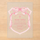 Pink Bow Crest Baptism Acrylic Invitations