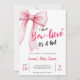Welcome your bundle of joy in style with this pink bow baby shower invitation for baby girls. It's a fun and cute way to celebrate your daughter's big debut. Personalize it with your event details for a party that will be truly un-bow-lievable.