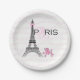 Pink Bow Eiffel Tower Paris France Poodle Party Paper Plate